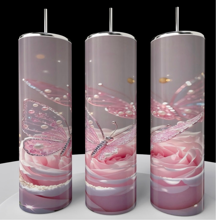 Introducing our rose butterfly stainless steel 20oz Stainless Steel Tumbler is a sleek and stylish addition to your drinkware collection.