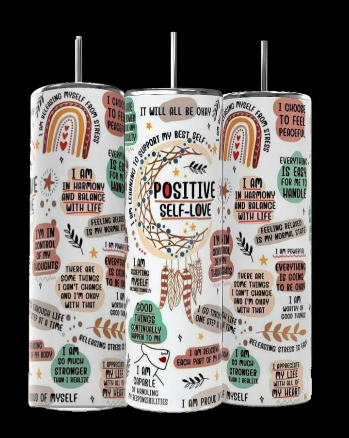 Positive Self Love Affirmations 20oz Skinny Tumbler