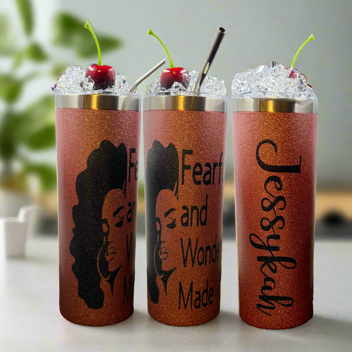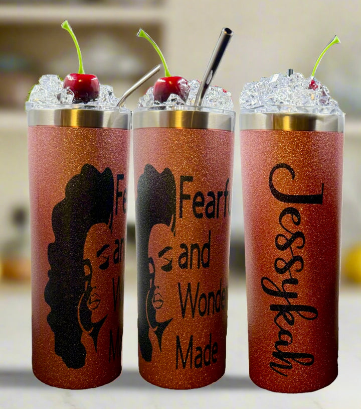 Introducing our Wonderfully and Fearfully Made Glitter 20oz Stainless Steel Tumbler is a sleek and stylish addition to your drinkware collection.