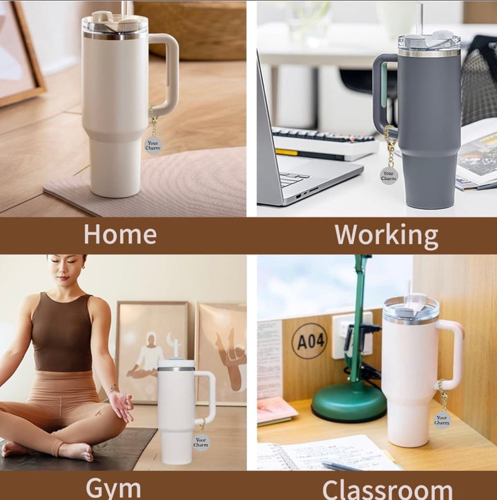 Your cup charm can be used in a variety of ways, the lobster claps allows you to attach to any handle, bag, keys and more