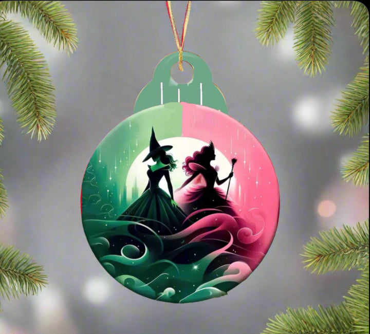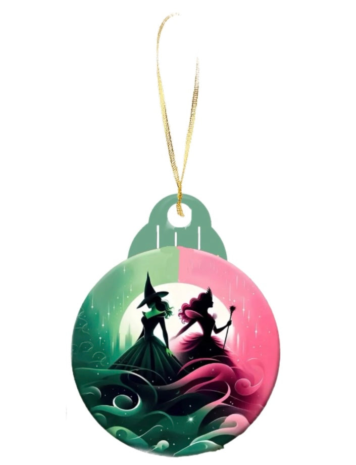 Celebrate the holiday season with our custom Wicked Christmas Ornament, perfect for fans and festive decorators alike. This beautiful double sided round ornament, crafted ceramic is smooth, traditional and handcrafted, features a vivid sublimated design inspired by the magic of Wicked
